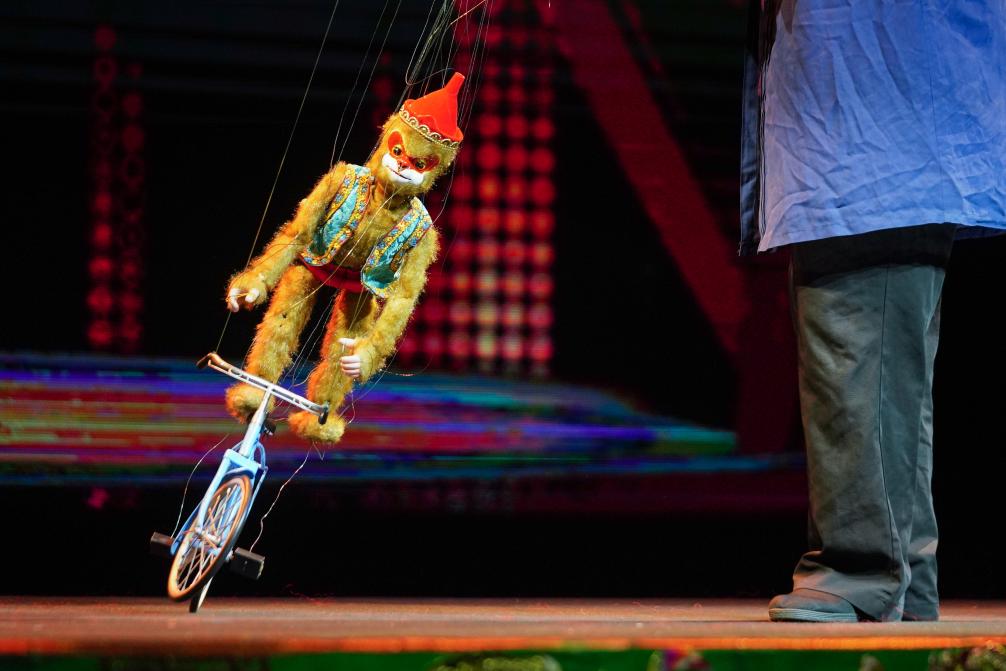 木偶小猴翻筋斗、弹吉他、耍金箍棒,动作灵动如真;木偶仙女卧倒在地,随着锣声“锵”地一响,站起的瞬间换了一身衣裳,引得观众一阵惊呼。春节假期,泉州木偶剧院好戏连场,台下座无虚席,现场掌声、喝彩声接连不断。