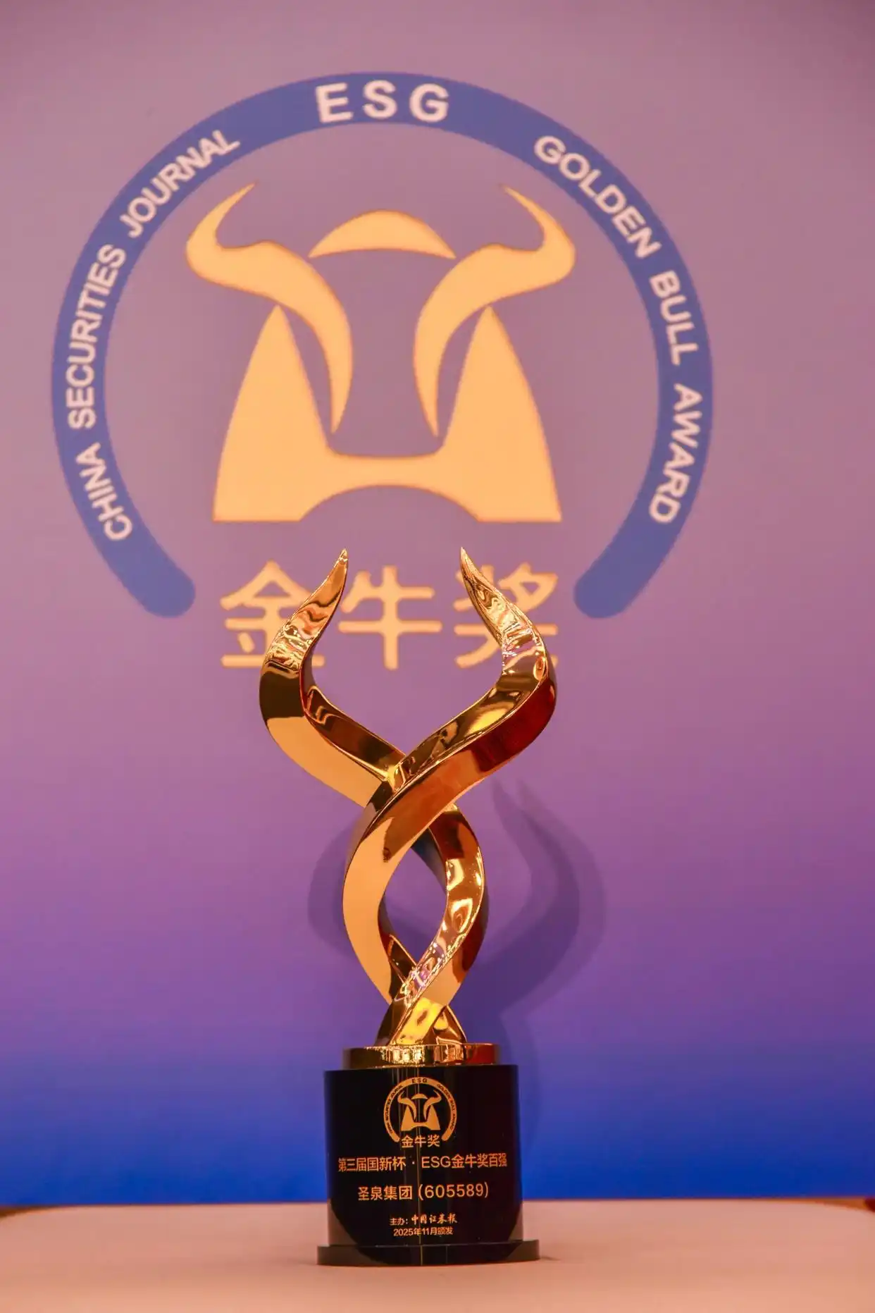 中证报中证网讯(记者 张鹏飞)11月26日,以“治善致远 绿动未来”为主题的2025年金牛企业可持续发展论坛暨第三届国新杯·ESG金牛奖颁奖典礼在江苏苏州举行。本次大会由中国证券报、中国国新控股有限责任公司主办,国新证券承办,苏州工业园区城市发展研究院全面战略支持,汇聚了众多资本市场与实体经济领域的领军企业与行业精英。备受瞩目的ESG金牛奖榜单揭晓,圣泉集团凭借在环境、社会及公司治理(ESG)领域的卓越实践与突出成果,成功跻身“ESG金牛奖百强”,彰显了行业领先的可持续发展实力。