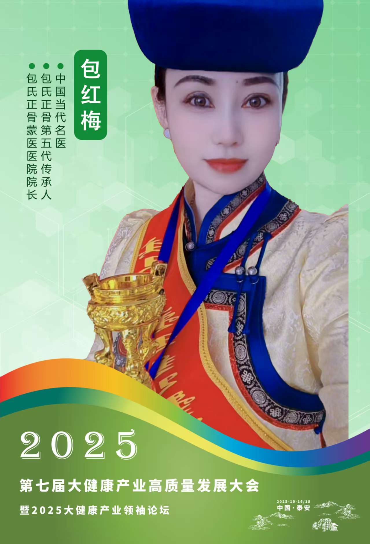 时间来到2025年,包红梅的荣誉之路仍在延续。4月,她获评“中医楷模人物”;5月,再次荣获“国医功勋人物”称号。从一名普通的蒙医传承人,到如今载誉无数的中医专家,包红梅始终坚守初心,以热爱与坚守守护包氏正骨这一非遗瑰宝,用实际行动诠释着新时代非遗传承人的责任与担当,为蒙医文化的传承与发展书写着崭新篇章。